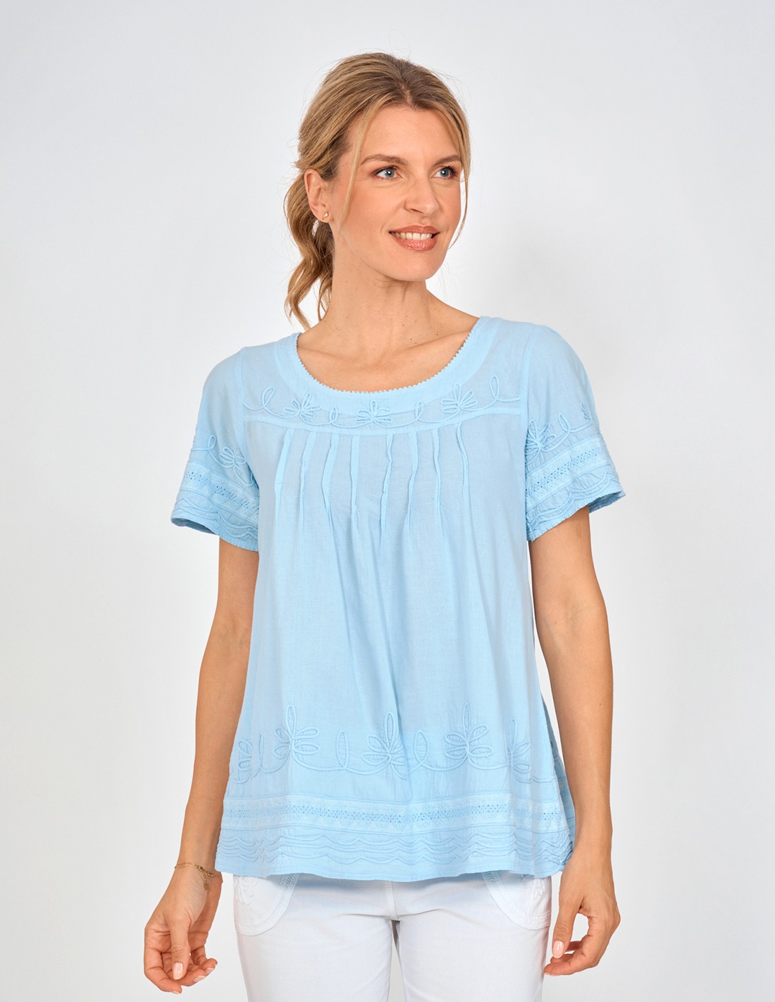 100% cotton short-sleeved tunic with multiple details. Light and very pleasant to wear, it is suitable for all body types !