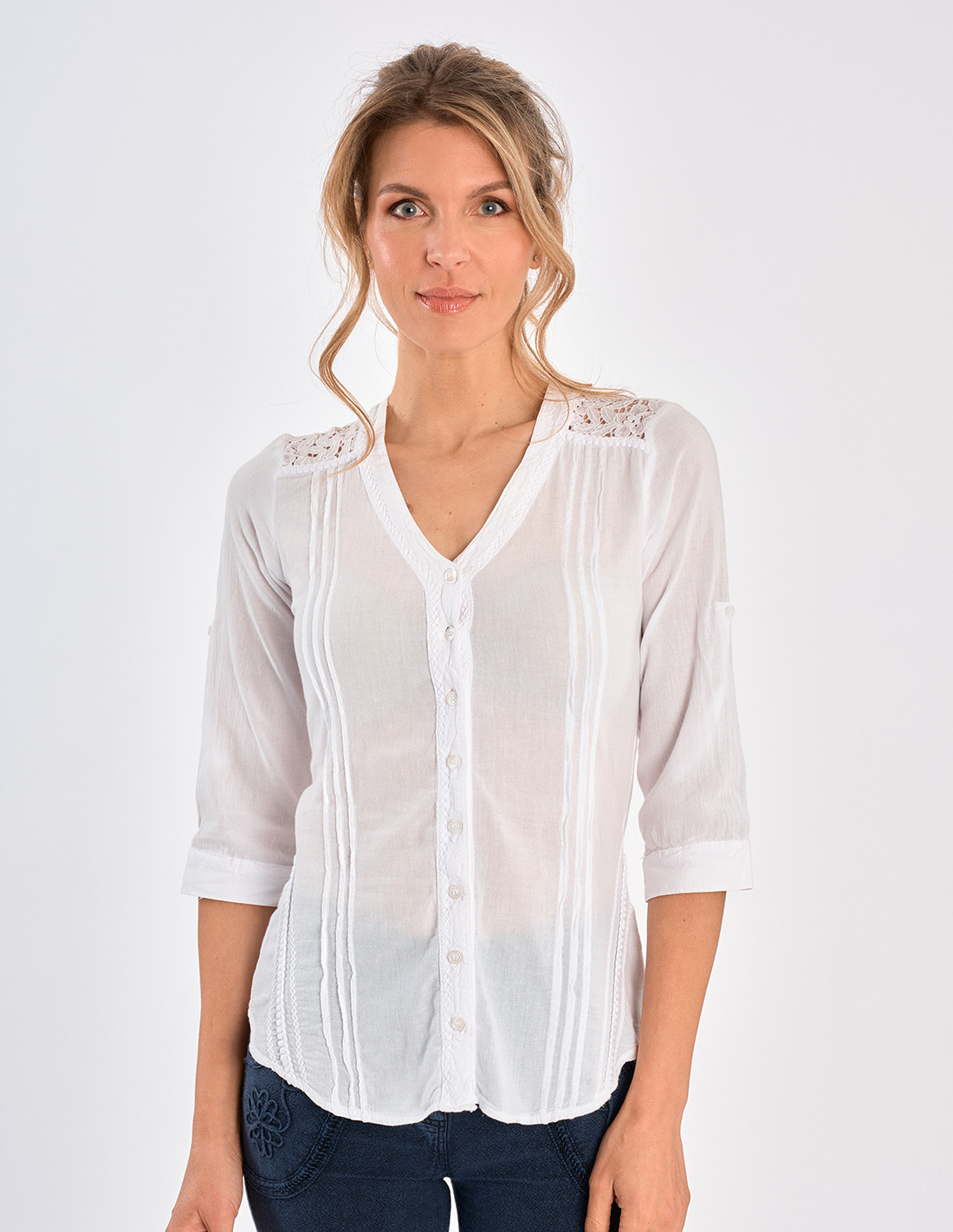 Blouse with pretty lace insert ! Ultra feminine, it’s an essential and timeless piece !
