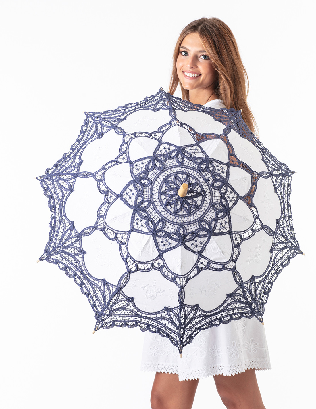 Ombrelle en tissu dentelé. Idéale pour les occasions familiales (baptêmes, mariages...) ou pour se protéger de la saison estivale !