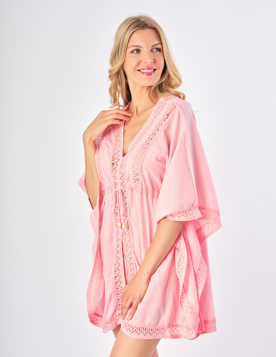 Tunique de plage en coton fin avec jolis détails en dentelle. Indispensable pour l’été, elle vous accompagnera dans toutes vos journées plages.