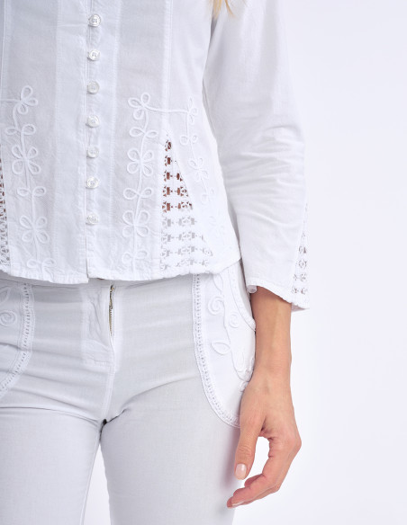 Chemisier cintré manches longues en coton. Une coupe parfaite, des détails séduisants, ce chemisier est idéal pour un look chic et raffiné ! Existe aussi en version manches courtes (ref 009).